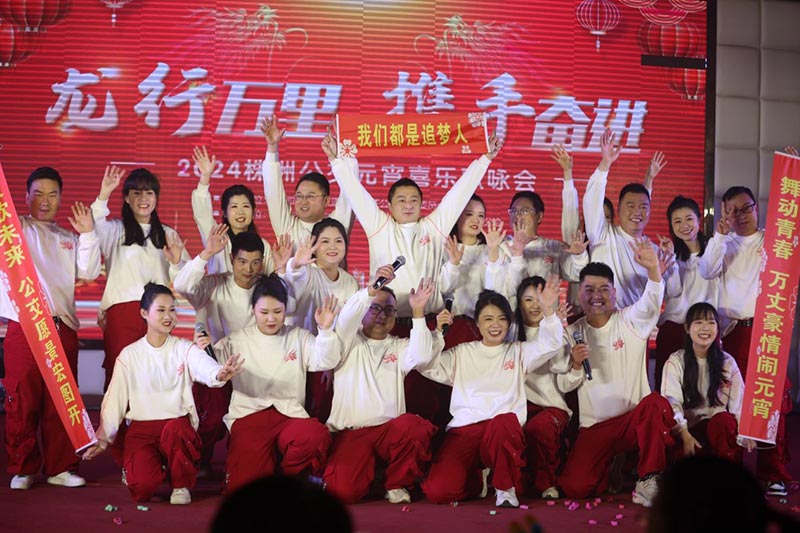當(dāng)天下午,一場(chǎng)精彩紛呈的"龍行萬(wàn)里·攜手奮進(jìn)"元宵歌詠會(huì)在公司職工之家拉開(kāi)帷幕。株洲市國(guó)資委四級(jí)調(diào)研員、工會(huì)主席朱艷輝,公司外部董事白瓊、周紅兵,公司領(lǐng)導(dǎo)班子成員出席活動(dòng)。人屏互動(dòng)開(kāi)場(chǎng)秀《龍的傳人》瞬間點(diǎn)燃現(xiàn)場(chǎng)氣氛,賈先才代表公司黨委向全體員工致以節(jié)日的問(wèn)候和誠(chéng)摯的祝福,希望大家在今后的工作中繼續(xù)保持昂揚(yáng)向上的精神風(fēng)貌,奮斗不息,砥礪前行。各單位深情演繹了一首首鏗鏘有力、催人奮進(jìn)的歌曲,展現(xiàn)了株洲公交員工優(yōu)秀的才藝和積極向上的精神風(fēng)貌,贏得了觀眾陣陣喝彩。最后,公司領(lǐng)導(dǎo)班子成員與現(xiàn)場(chǎng)職工一起合唱《團(tuán)結(jié)就是力量》,活動(dòng)在激昂高亢的歌聲中落下帷幕。